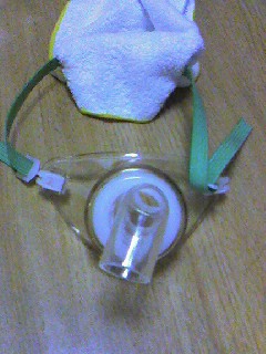 18日手術予定のY君のために製作しました。トラキマスク・・1300円 タオル(・・お茶の粗品) カニューレ、人工鼻は病院からもらったテープはキノホワイト使用・・1巻きいくらだったかな?命名はかかりつけ医のKドクター。特許でもとりますか・・