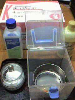 気管切開をしたのち在宅に帰るときのマニュアルを作っている病院もあるようですが、信ちゃんの時はありませんでした。入院中に指導はされ、ずっと付き添いだったので、手技は熟知していましたが、どんな容器が良いのかいろいろ悩みました。在宅では病院とは違いコスト面も考えなければならず、精製水は煮沸水に代え、吸引チューブをつけておくジアミトールも少なくてすむように、100円均一のCDケースにステンレス製の丸い容器を使っています。吸引チューブを流す煮沸水の容器は、哺乳ビンを使っています。煮沸消毒でき、乳首の先を少し切ると、チューブが中に沈みません。口用は緑、気管用は白です。日に一度大きなお鍋で、丸い容器と哺乳瓶を煮沸しています。(2セットあり)(気管吸引する前と後で水を分けている人もいます)