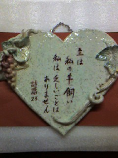 今日はうちの教会の42周年記念礼拝でした。42年前まだ30代の女性牧師がわずかな荷物だけで、名古屋からこの地に来られました。小さな6畳一間のアパートから開拓伝道され、借家、100名の会堂を経て、250名の今の会堂が建てられました。70代の今も大変お元気でこの教会に住まれています。(詳しくは教会のホームページをご覧下さい)今日はそのお祝いにKBI(関西聖書学院)院長の大田裕作牧師が来られました。午前の記念礼拝は私はあいにく出れませんでしたが(パソコンで聞くことが出来ます)午後の信徒特別集会に出ることが出来ました。いつもエネルギッシュな先生。学生でまだノンクリスチャンの時に牧師になろうと決心されたそうです。神学校時代、西宮福音教会時代、インドネシア宣教時代、そして今のkBIのお話を語ってくださいました。大田先生と信ちゃんは西宮福音教会時代(19年前)にお会いし、その後次男が同じ保育園という関係です。その時私はまだノンクリスチャンで、奥様から何度かお手紙も頂きながら、教会につながることはありませんでした。今となっては背後で祈っていただいていたことを思います。今日は信ちゃんの昨年の成人式の写真をお渡しすることができました。