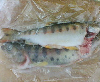 昨日実家からいろいろな物が送られてきました米、お菓子、生どら、乾麺類、などなどその他にもなんと川魚のヤマメが送られてきました自分の親父は最近渓流釣りにはまってるらしく休日にはしょっちゅう山に出かけて渓流釣りをしてるらしいです釣れるのはヤマメ、たまに岩魚って感じらしいですんで今回はヤマメを送ってくれたみたいですそして昨日の夕飯に塩焼きにしてみましたいや~川魚の独特の味がしてうまかった~♪酒が飲みたくなりましたそれからヤマメのほかに島根の伝統料理??笹巻きが送られてきました島根では7月に入るとこれを作って食べるんですが由来はなんですが3年ぶり??に食べますいや~懐かしい明日の朝食べよう
