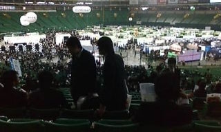 いや~わたくしの実家のある島根にもとうとう就活の波がやってまいりました…ということで3月10日~3月22日まで島根で就活(説明会に参加)をしてるわけなんですがう~ん会社が少ないねぇ~さすが 過疎化No1今回帰ってきて、行くor行く予定の会社は9社なんですが採用人数少ないっすね… 合同説明会の会場 くにびきメッセ↓↓ 厳しい現実を思い知るわけですよまぁ~しかし説明会に行ってきた会社は田舎らしくアットホームな感じで好印象こういう会社で働きたいな~って思う会社もちらほらあります幸運を祈るばかりです… ちなみに最初の面接があるのは 島根の某銀行で 3月21日ですわ とりあえず一次試験には受かりたいもんですな ちなみに昨日は やることがなかったんで おやじと渓流釣りに行ってまいりました 結果 ヤマメ3匹 イワナ4匹 ふきのとう6個の収穫が 春ですなぁ~