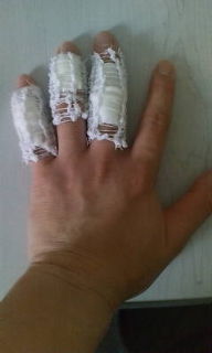 ではありません 突き指でも包丁で切ったわけではありません また 皮膚の病気?? が悪化したせいで 久しぶりに 皮膚科に行きましたら また こんな感じになりました 塗り薬も 大量… 今回は強めだそうです