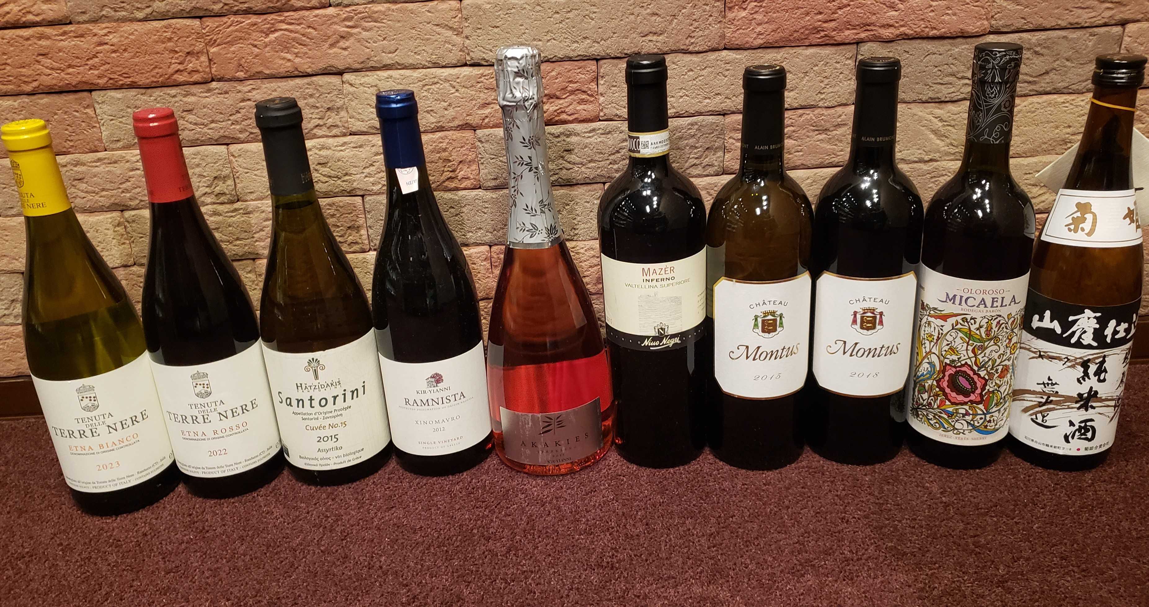 信頼 情熱 健康 継続 秩序・・・-自分の分身だったブログ一度やめてしまったら、なかなか再開できなくなってしまった でも、いつか再開したいずっと思っていました『遺言』別に死ぬつもりもないし、死ぬ予定もないけど未来に残したいことがある - まずは宿題をこなしますいつかやってみたいと思っていた『ワインバー企画』すげーうまくいきました昨年の12月忘年会に私的ワイン持ち込みそのラインナップを紹介してなかった確かこれが最終形 購入価格2~4千円程度を目安に・飲んだことのなさそうな・聞いたこともないようなそんなワインたちを選びました左からエトナ白エトナ赤ギリシャ アシルティコギリシャ クシノマヴロギリシャ クシノマヴロ泡イタリア ヴァルテリーナフランス 南西地区白フランス 南西地区赤スペイン シェリーオロロソ日本 菊姫山廃純米無濾過生原酒 -ワインバー企画〇良かった点・いっぱい人が来てくれた・ボトル10本全部空いた×悪かった点・忘年会の出し物の方を見れなかった・ワイン飲まない人と話が出来なかった 今年もまたやりたい!