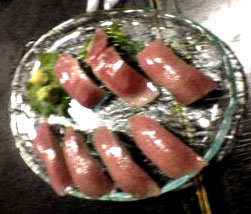 先日、浦添市経塚の『酒菜亭とらや』さんで、石垣牛を食べてきました。ここ、最近『ジョートーTV』によく登場する、料理人、道筆博さんおすすめの店です。特選石垣牛っていうので、しきいの高そうな店なのかなぁ、と思ったら、沖縄定番の居酒屋さんスタイル。これだったら、気取らずに来られますね。今回のターゲットは、『石垣牛のあぶり寿司』(左下の写真)2000円 どうですかぁ。見るからに旨そうでしょ あぶりといっても、焦げ目がつかない程度に絶妙にあぶってあって、口に入れたとたん、溶けた石垣牛の脂がいっぱいに広がるんです。何じゃこりゃー 7巻ですが、これ、あっという間に食べちゃいそうですよ。そして、お約束の『特選石垣牛のステーキ』(右下の写真)3000円 こちらは「血統書付き」なんだそうですよ。柔らかくて、おいしい。カット・ステーキなので、今回みたいな「飲み会」でも、みんなでつつけて、気軽に楽しめますね。 それから、絶品だったのが、『あぐー餃子』 カリカリの皮の中から、アグーの肉汁がジュワ~。大粒のアグーの肉の噛みごたえも最高ですよ。ここ、『ダチョウステーキ』1200円、『うさぎ唐揚げ』、『かえる唐揚げ』、『ウズラ唐揚げ』各980円なんていうメニューもあって、飲み会は、かなり盛り上がること間違いなしです。これまでの『沖縄のおいしいもの』の記事は こちら