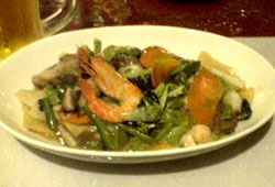 かねてから気がかりだった、『リマレストラン』の中華、ついに食べてきました。まず、『上等チャプスイ』(左下の写真) 『チャプスイ』というのは、炒めた具に、あんかけをかけたもののようです。『上等』っていうのは、沖縄の人にはいうまでもないと思いますが、沖縄で何気に使われる言葉です。ちなみに、ここのメニューの英訳では、「Special」となっていたような気がします。海老と、ソーキ、牛肉なんかがすべて入っているので、『上等』なんでしょうね。 内地でいったら、『特上』ってことですかね。 そして、『エグフーヤン』(右下の写真) 具の入ったあんかけオムレツといったところです。ごはんに載せると、天津丼みたいな感じでおいしいですよ。中華もおいしい『リマレストラン』 やはり、恐るべしです。