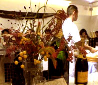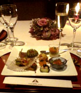 今夜は、沖縄ハーバービュー・ホテルのレストラン『ベルビュー』で、ワイン&グルメフェアー『和と洋のコラボレーション』というイベントがあったので、行ってきました。和食の料理長と、ベルビューの長嶺シェフ(今回は、下にシェフの写真も載せさせていただきましたョ。)のガチンコ…、いや、コラボによる、とってもゴージャスな一夜。ジャンルの垣根を越えた、バラエティー豊かな料理に、ニコラ・ジョリーや、プリューレ・ロックといった、ビオディナミ(自然派)のワインを合わせてしまうというコンセプト。すごくワクワクしますよね。ごらんのように、テーブルのセッティングも、和のテイストを取り入れて、とっても落ち着いた感じです。まずは、秋を感じさせる食材をふんだんに取り入れた『前菜』(左下の写真)と、シャンパーニュ。レイモン・ブラールという作り手のクリュ・ブリュット・レゼルヴと、クリュ・ブラン・ド・ブランをいただきましたが、特に、ブラン・ド・ブランは薫り高く、ニュアンスも豊か。おいしかったですよぉ~。 前菜には、卵の黄身のみそ漬けや、鮎の甘露煮なんかも載っていて、スタートから、すっかりノックアウトされてしまいました。続いて、『魚介類の刺身とマリネ』(右下の写真)。これも、いろいろな素材が段重ねになっていたりと、かなり細かく手の入った一皿。れんげに乗っていたウニもおいしかったですよ~。 『秋野菜とミーバイ(沖縄最高の高級魚、ハタの仲間)の炊き合わせ、生ハムと香草風味』(左下の写真)が出てくるころには、『世界で最も健康なワイン』としてドイツのDGUHTという政府機関に認定されている『ニコライホーフ・イム・ヴァインゲビルゲ』の『グリューナー・フェルトリナー スマラクト 2003』(下の写真で、ソムリエールの宮里さんが持っているワイン)や、お待ちかねのニコラ・ジョリー『サヴィニエール レ・ヴュー・クロ 2004』(下の写真で、ソムリエの比嘉さんが持っているワイン)が登場 特に、ニコラ・ジョリーのワイン(左下の写真)は、黄金色をした、豊かな風味を感じさせるワインで、口に含むと、空気のようにふわっとした柔らかな感触。これって、前日に抜栓して、何度もデカンタージュしたからなんだそうです。以前に、ニコラ・ジョリーのワインを飲んだとき、何となくピンと来なかったのですが、今回は、とっても納得できたような気がしました。う~ん、ニコラ・ジョリー、恐るべし。 続いて、『伊勢エビの蒸し煮、トリュフ風味』(左下の写真) これはおいしかったですよ~。 伊勢エビの身を白菜巻きにしてあるんですが、身のまわりには、トリュフをたっぷり使ったソースがたっぷり。一口食べると、トリュフの風味が、モワッ 最高です。 そして、これでもかという感じで、メインの肉料理は、『シャラン産鴨胸肉のロティとフォアグラ、県産和牛の西京焼き』(右下の写真)です。来ました、来ました、プリューレ・ロックの『ニュイ・サンジョルジュ クロ・ド・コルヴェ 1999』。いつもながら、微妙な不透明さ。独特の果実味と樽のニュアンスのバランス。それに、何となく、古き良き時代を彷彿とさせるようなふんいきも感じます。これをもっと甘くすると、ポンパドゥール夫人が飲んだ『ロマネ・コンティ』やナポレオンが飲んだ『シャンベルタン』みたいな感じになるのかなぁ…(そんなの、誰も飲んだことないから、想像するのは勝手ですよね)、などなど、思いを馳せつつ、楽しませていただきました。 今回は、デザートも、ご覧の通り、盛りだくさん。しかも、あずきなど、和風の感覚も取り入れた力作です。デザートには、先ほどと同じ、ニコライホーフの『ズーセンベルク グリューナー・フェルトリナー アウスレーゼ 1999』をいただきましたが、ほかに、比嘉さんが、『キナート・ボルゴーニョ』というフレーヴァード・ワインを紹介してくれました。キナの樹皮などで香りをつけてあって、甘く、ちょっとだけ、サルノコシカケとか、漢方薬とか、養命酒みたいな風味があります。これ、お休み前の一杯や、葉巻のお伴にもいいかもしれませんね。 レイモン・ブラールクリュ・ブリュット・レゼルヴ ニコライホーフ・イム・ヴァインゲビルゲグリューナー・フェルトリナースマラクト 2003ニコラ・ジョリーサヴィニエールレ・ヴュー・クロ 2004 ドメーヌ・プリューレ・ロックニュイ・サンジョルジュクロ・ド・コルヴェ 1999ニコライホーフ ズーセンベルクグリューナー・フェルトリナーアウスレーゼ 1999 キナート・ボルゴーニョこれまでの『沖縄のおいしいもの』の記事は こちら