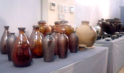 泡盛マイスターの講習の帰り、国際通りのてんぶす館で、セラ技の会の展覧会に寄らせていただきました。立派な酒甕もたくさん展示されていましたが、我が家には、置く場所はなさそうなので、今回は、登川さんの作る東恩納窯『登川焼』の、ちょっと大きめのトックリ(右下の写真)を買ってみました。これは、カタを使って、同じ形状のものをたくさん作るもののようで、比較的お値段も抑えめ。でも、こんなトックリでお酒をつがれたら、さぞかしおいしいお酒のような気がしませんかぁ??
