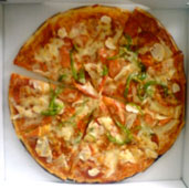 今日は、火曜日。今日は珍しく仕事がお昼までだったので、どこかでお昼を食べようと思ったんですが、沖縄は、火曜日定休日の店がほとんど!? あそこも、ここも休みで、ほぼ全滅です。というわけで、今日は、家の近くの、ピザお持ち帰り専門店『パルコ』首里店に行ってみました。俺の心の隙間を、今、この瞬間に埋めてくれるのは、食い物だけだぁ~って感じだったんですよね。ここのピザ、安いんですよ~。Mサイズ(25cm)が、945円~。 バジル、ガーリック・パウダー、パセリなども無料サービス。安いのに、気が利いてますよね。今日は、『ガーリックピザ』(左の写真)、『チーズスペシャルピザ』(中央の写真)、それに、チキンも頼んでしまいました。ストレスのなせるワザですね。 家に帰るまでの間、車の中に、ガーリックの香りが充満して、「お~、早く食わせろ~っ!!」って感じ。これまでの『沖縄のおいしいもの』はこちら