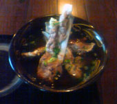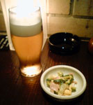 先日、東京に行ったとき、ホテルの近くに軽~く飲みに行きました。 神保町の駅周辺をブラブラ歩いていて見つけたのが、この『てけてけ』というお店です。まずはビール。すると、つき出しで、『ゴーヤ』がでてきました。東京に来ても、ゴーヤとビール!? ちょっと意外な感じです。ここの看板メニューは、『塩つくね』らしく、カウンターに座るお客さんみんなが注文。自分も頼んでみました。263円とは、安いですよね~。やわらかくて、ジューシー、肉汁と脂がジュワ~ンです。 中に、刻んだナンコツなんかも入っていて、ちょっとしたアクセントになってます。よほどの人気なのか、自分が食べ終わる頃には、もう品切れになってしまいました。串もので、『白レバー』っていうのも頼んでみました。こちらは、思ったほど脂たっぷりではなく、ちょっとやわらくて、プリプリしたレバーという感じでした。 そして、じゃじゃ~ん、『コブサラダ』。コブサラダとは、アメリカで、コブさんがまかない用に作ったサラダがオリジナルなんだそうです。いろいろな具材が乗って、ボリュームたっぷりです。このお店、いろいろな焼酎もそろっていました。まずは、定番ですが、『明るい農村』。このネーミング、最高です。 となりにあった、『風憚』もいただいてみました。貴重な栗黄金という芋を使って作った焼酎です。そのほか、濾過を減らして、コクのある風味に仕上げた『濁り芋』や、ジョイホワイトという芋を使った『ひとり歩き』なんかもいただきました。 そのほか、以前もご紹介した『梅の宿鶯梅あらごし梅酒』と、日本酒に飛鳥るびーという苺を漬け込んだ、『梅の宿苺酒飛鳥るびー』という珍しいお酒もいただいちゃいました。きれいな色彩、ほのかな甘みで、とってもおいしかったですよ。女性には大人気かもしれません。自分的には、このお酒に漬け込んだ苺も食べてみたいですね~。 明るい農村 風憚 濁り芋 ひとり歩き 梅の宿梅酒 苺酒