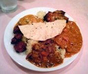今日は、渋谷に来てます。 実は、初来日の『パレルモ・マッシモ劇場』の公演を見に来ちゃいました。公演の前の腹ごしらえで、HMVの向かいにある、『ラージパレス』というインド王公貴族料理のお店に入ってみました。お昼は、1500円で、チキン、野菜、豆、チキンと野菜、マトンといった5種類のカレーが食べ放題。ここの、カレー、スパイスが効いてて、すごくおいしいです。さすが、王公貴族料理 焼きたてのナンもどっさり持ってきてくれます。チーズ入りのナンもありました。バナナケーキを甘いシロップに漬けたような感じのデザートも、エキゾチック。ここ、正解でしたョ。