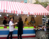 先日、那覇市新都心で、那覇市環境フェアー2007というイベントがあったので、行ってきました。ガソリン代の高騰などで、もはや環境問題は誰にも無視できない課題になっていますよね。たくさんのブースが出て、環境問題への取り組みを紹介していました。沖縄電力や、JUSCOのほか、ハーバービュー・ホテルのブースもありました。実は、ちょっとした知り合いの、ヘルシーダイニング『Cure Heart(キュア・ハート)』さんが出店していて、『県産豚肉と島どうふのハンバーグ』や『色々やさいとトマトのビーフシチュー』などを提供していました。『Cure Heart』の林さんは、「癒食同源」をコンセプトにした、手作りの野菜たっぷりのお料理が自慢だそうです。今回は、『Cure Heart』さんの『色々やさいとトマトのビーフシチュー』と、お隣のブースの『鶏のアドボ・黒酢風味』を食べました。どちらも、ECOを意識しているだけに、自然の恵みたっぷりの優しい味でした。今回は、ゴミ減量のため、食器やお箸などは使い捨てではなく、那覇市が所有する、荷台に自動食器洗浄機を積んだトラックも出動していましたョ。