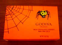 ちょっと珍しいGODIVAをいただきました。クモが描かれたポップなデザイン。中身は、チョコにコートされた、塩味の効いたプレッツェルです。おいしいですね。クセになります。国内では販売されてないみたい。見たことないですよね。