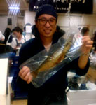 今、沖縄三越では、『福島の物産と観光展』を開催中。 TV-CMも放映されているので、ご存知の方も多いですよね。実は、以前にもご紹介したおいしい燻製卵を作っている、『燻製工房・木香』の渡辺さんが、今回初出品されているんです さっそく、応援&購入に行って来ましたよ。 卵の燻製は、相変わらずとっても濃厚で、クリーミー。 たまりませんね~。 渡辺さんは、渓流釣りのプロフェッショナル! 今回燻製にしてあるイワナやヤマメは、渡辺さんが釣った魚だそうです。ほかに、大きいサクラマスや、超特大のイワナなどもありました。サクラマスは脂が乗っていて、おいしそうですよ~。 そして、今回、自分も初めて食べさせていただいた最新作は、鮭の白子、あん肝(あんこうの肝)、ゴボウです。鮭の白子は、生臭さを消すために、ローズマリーなどのハーブといっしょに漬け込んでから燻製にしているそうです。これまた、まったりクリーミーで、トロッとしてます。ホントに絶品グルメですね。そして、お酒好きにはたまらない、あん肝! あ~、この脂の感じと、スモークの絶妙なハーモニー。日本酒にも、泡盛にも、ウイスキーにも合いそうです。ゴボウの燻製って、意外な感じがしますよね。東北の秋田には、たくあんをスモークにしたような感じの『イブリガッコ』という食べ物があります。ジャンルとしては似ている感じ。でも、ゴボウのほうが、風味もしっかりしていて、食物繊維も多く、噛みごたえもあって、クセになりますね。 11月5日までですので、ぜひお早めに! 自分も、自宅用はもとより、お世話になった方へのお礼用に、卵、鮭、あん肝、サクラマスなどを購入させていただきましたョ。今回の『福島の物産と観光展』、渡辺さんの『燻製工房・木香』のほかに、ゆべしや、ヤナギガレイの干物、イワナの塩焼き、温泉卵の『たまご美人』などのお店や、なかには、スッポンを丸ごと売っているお店まであって、かなり賑やかでした。 イート・インのコーナーでは、喜多方ラーメンや、白河の『千草屋』のハヤシライスや、レストラン『シャロン』の『さるなしカツカレー』なども食べられます。
