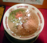 先日、『せいもん払い』で食事をした後、何人かで中洲の屋台にラーメンを食べに行きました。地元のみなさんのおすすめは、この『一竜』です。このあたりで、一番長い行列ができる店だそうで、この日も10人前後の行列ができていました。ここのお店は、いわゆる「豚臭さ」があまりなく、まろやかなコクのあるスープが自慢だそうです。たしかに、スープ、おいしいですね。塩分と脂肪がたっぷりで、体に悪いと知ってはいながら、やっぱり全部飲んでしまいます。 麺は固めで、喉ごしがなんともいえません。ん~、幸せ~。 またしても、βエンドルフィンが出まくりです。おでんの大根や、卵、ロールキャベツも、脂とダシがしみてて、最高においしかったです。 博多・中洲屋台ラーメン 一竜(8食セット)