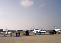 昨日は、航空自衛隊那覇基地のエアーフェスタ2007に行ってきました。 ゆいレールから那覇基地を見ると、大きな垂れ幕がかかっていたので、ずっと気になっていたんです。エアーフェスタ2007の目玉は、やっぱり、ブルーインパルスのアクロバットです。実際にナマで見るのははじめてでしたが、すっごく感激しました! パイロットのみなさんの、揺るぎないテクニック、さすがですね~。空に描く軌跡、本当に美しかったです。まさにアート! 写真ではわかりにくいかもしれませんが、でっかいハートも描いてくれましたョ。 那覇基地所属のF-4の飛行もカッコよかったですよ~。 猛スピードで基地上空に進入して、急旋回して上昇するシーンなど、ホント、トップガンそのものでした。 基地内では、さまざまな飛行機やヘリコプターが展示されていました。コクピット試乗体験をする人もたくさん並んでいましたョ。会場のすぐそばを、那覇空港に発着する旅客機が通るのも、迫力がありました。 アトラクションの合間には、基地内を歩いてみましたが、普段みることができない基地内の風景を見ることができるのも楽しいですよね。 『自衛隊スタミナラーメン』や、辛いのが一つ入って、ロシアン・ルーレットになっている『炎の作戦』、『自衛隊ケーキ班』といった限定のおみやげも売っていました。 今日は、期待以上に本当に楽しい1日でした。自衛隊のみなさん、本当にご苦労様でした。