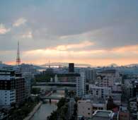 今日は、仕事で福岡に来ています。 仕事が終わって、ホテルにもどると、博多湾の夕焼けがすごくきれいでした。自分で講演しないですむ出張っていうのは、すっごく気が楽ですね~。仕事のあとは、福岡の海の幸をバッチリいただいちゃおうということで、地元の有名店『ひょうたん寿司』に行ってきました。 天神の駅のすぐそばにあるこのお店は、安くておいしい寿司が食べられると評判だそうで、いつも行列ができているんだそうです。自分が行ったこの日も、階段の下までずら~っと行列ができてました。30分くらい待って入店です。まずは、エビスの『黒』で乾杯。刺身の盛り合わせをいただきました。盛り合わせから、すっごい大トロにビックリです。ものすごく脂がのって、トロケます。 続いて、このお店の名物メニュー3兄弟。まずはクジラです。クジラの「さえずり(舌)」と「うね(腹側)」の刺身。貴重なクジラ、こんなに山盛り食べちゃって、いいんでしょうか?? にぎり寿司は、ゴンサバ、中トロの炙り、大トロです。このゴンサバも、このお店の名物らしく、脂がのって、新鮮、しかも大ぶりで、本当においしかったです。そして、アワビの踊り食いの軍艦。動いてます こんなの、ほかでは食べたことないですよね。 口の中で吸い付いたらどうしよう…と思いましたが、全然そんな心配はいりませんでした。生きているくらい新鮮なアワビですから、コリッ、コリッと、すごい歯ごたえ。生臭さもなくて、一気に食べてしまいました。 ここで、お店の人に、「ウニありますか?」と聞いたところ、『HERO』のSt.George's Tavernのマスターみたいに、「あるよ。」といいながら、ニヤッと笑って出してくれたのが、コレです。じゃじゃ~ん、ウニ板で~す。新鮮で、甘くて、トロケて、ホント、たまりません。で、もう1枚おかわりしちゃいました。コラ~ッこのお店、焼き物もおいしかったです。今回は、「ツボ鯛」を頼んでみました。お箸を入れたとたんあふれてくる脂、うまいもの好きにはたまらない一品ですよね。 以上は、このお店の特ダネメニューですが、このお店、卵焼きとか、ナスといったさりげないメニューもとてもおいしいんです。もちろん、自家製明太子も。ホント、何から何まで楽しめるいいお店ですね。福岡に行ったら、ぜひまた寄ってみようと思います。