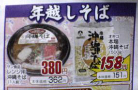 それにしても、通常98円で売られている沖縄そばの麺が、年越しだからといって、158円! どういうことですかぁ!! あまりにえげつない! 沖縄の主婦のみなさん、もっと怒らないと!