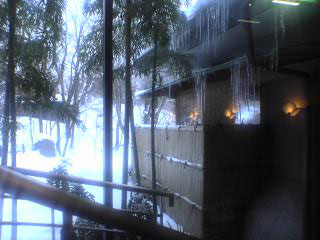 に泊まりました。那須は雪が30センチくらい積もっていて、零下の寒さでした。軒先には氷柱(つらら)が。