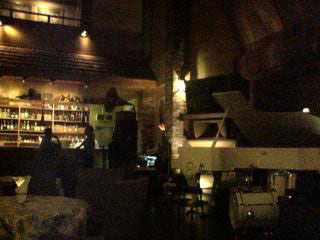ここ、オーディオ・ショップの2階にあるだけあって、Westlake Audioっていう会社の輸入物のデカいスピーカーがド~ンとあって、ステージ中央には、白いベーゼンドルファーが置いてある、とってもすてきなライヴハウスです。実は、かれこれ、2年前くらいから、ずっと来たいと思ってたんですよね。沖縄って、こういう身近にこういうスポットがあって、いいですよね。