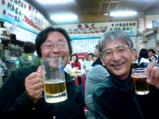 今日、その先輩が帰られるので、一緒に牧志公設市場に行きました。市場の2階の食堂で、昼間っから、ビール&泡盛で盛り上がってしまいましたョ。