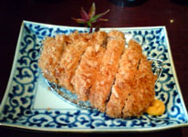 今回は、『黒豚 "トロ" ロースカツ膳(2400円)』を頼んでみましたョ。ロースの上に、さらに「トロ」が付くとは。かなり脂が乗っているに違いありません。 ここで使われている黒豚は、薩摩の六白黒豚という豚で、バークシャー種と島豚ベースの黒豚をさらに改良を重ねてあるんだそうです。四本の足首と鼻とそして尾っぽの六ケ所が白いので、「六白」と呼ぶんだそうですョ。