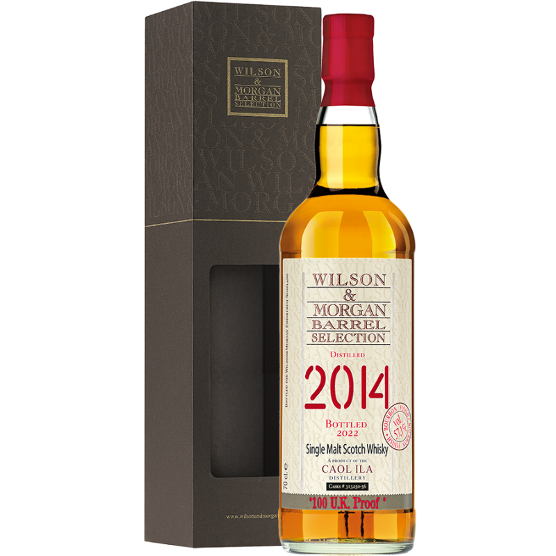この素晴らしいセレクションの為の琥珀色のウイスキーの樽はすべてウィルソン&モーガン代表であるファビオ・ロッシ氏により選ばれています。それは風味を損なうチルフィルタード無しでカラメルを添加してしていないものです。他の多くのウイスキーよりも色が少し薄いかもしれませんが、純粋で本来のウイスキーの味わいのものです。 ウィルソン&モーガン バレルセレクション46%で濃い琥珀色のウイスキーは明るいゴールデン色のウイスキーをシェリーウッドバレルやポート、マルサラカスクにて12~18カ月フィニッシュ熟成させています。46%、48%もしくは50%や100UKプルーフでボトリングされているのは純粋に水分が少なくなりウイスキー分が増しているからです。そしてウイスキー愛好家に心から楽しんで頂ける完璧なスコッチシングルモルトウイスキーとなるのです。カリラ 2014-2022 57.1%"100 U.K. プルーフ" 9380円(税込)国内入荷150本限定 その力強さを活かす為に、伝統的な100UKプルーフでボトリングされたこのアイラモルトは、最近出会った中で最もフルボディでジューシーで芳香の豊かなモルトの1つです。 このパワフルさは、ピートスモークの強さと、このモルトの特徴であるバーボン樽のクリーミーな甘さのユニークな組み合わせから生まれています。 香りはスモーキーとタールのダークな感じを、リッチなバルサミコがカバーをしています。おそらくオークからのカンフルと樹脂っぽさ、そしてもちろん、紛れもなく潮っぽい海の香り。 バーボンカスクからの影響は、味わいに良く出ていて、プレーンでシンプルな甘さやバニラの香りだけではなく、筋肉質な個性とまろやかさが口中を覆います。繰り返しになりますが、とてもスモーキーで、タール感があり、松葉やリコリスも感じる芳香が豊かです。本当に力強いピートウイスキーです。