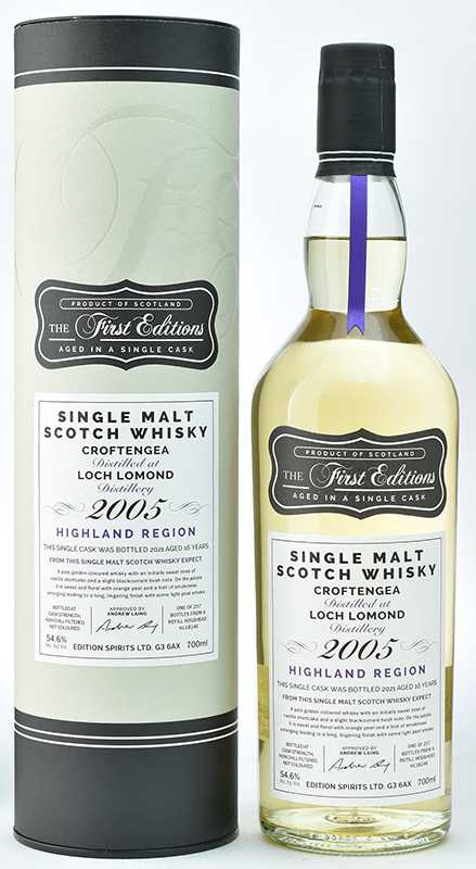 <エディションスピリッツ社>*クロフテンギア 2005 16年 ファーストエディションズ 54.6% 700ML16200円(税込) 入荷78本 生産本数: 257本 カスクタイプ: リフィルホグスヘッド(樽レファレンス番号:HL18246)蒸留:2005年2月ボトリング:2021年※LOCH LOMOND蒸留所のヘビリーーピートタイプのモルト。 A pale golden coloured whisky with an initially sweet nose of vanilla shortcake and a slight blackcurrant bush note. On the palate it is sweet and floral with orange peel and a hint of smokiness emerging leading to a long, lingering finish with some light peat smoke. テイスティングノート淡い黄金色の外観で、初めにバニラケーキとわずかに黒スグリの香り。オレンジピールとかすかにスモーキーさを感じる甘くてフローラルな味わい。軽めのピートスモークをいつまでも感じる長いフィニッシュ。 (今日の小言)昨夜人生2度目の救急車でほとんど昨夜は寝ておりませんでしたが今日は昨日の年末並の忙しさから一変し超暇でしたが2,3日営業で御迷惑をおかけしてしまった際には御了承ください、それにしても緊急病院の紹介状が拒否されるとは初めて知りましたは・・・