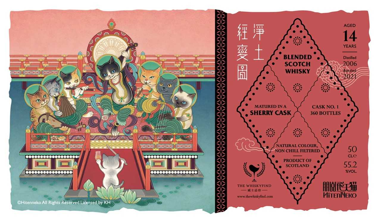 ウィスキーファインドの「HittenNeko」シリーズより最新作の第三段、ブレンデッドスコッチウィスキーのご案内をさせて頂きます! アイラモルト10%を含んだブレンデッドウィスキーとなります。「Hitten Neko - Blended Scotch 2006」 ・Blended Scotch Whisky(10% Islay)・Distilled: 2006 ・Bottled: 2021・Aged: 14yo・Cask Type: Sherry Cask・Cask No.: 1・度数:55.2%・容量:500ml・本数:360本・輸入:72本15950円(税込)~ Image ~HITTENNEKOは偉大なるマスターブレンダー。ブレンディングはまさにオーケストラの指揮者の様。それぞれの原酒たちはそれぞれメロディーを奏で、極上のブレンデッドのハーモニーとなりました! ~Tasting note~・Nose:ドライフルーツ、ストーンフルーツ、ハチミツ、フローラル、ほのかなピート、マーマレード ・Palate:ドライフルーツ、マーマレード、ココア、タバコ、潮風、スモーキー ・Finish:ストーンフルーツ、タバコ、モカ、ココア、ミーティー、スモーキー