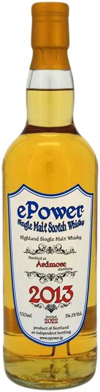 ePowerオリジナルラベルのボトル、2年ぶり!アードモア 2013年 54.1% 700ml 14500円(税込)※ 2013-2022シングルモルト スコッチウイスキー※ シングルカスク カスクストレングス良いものだけをボトリングするというコンセプトのイーパワーオリジナルボトリング。おかげ様で、弊社オリジナルボトルはすべて酒質がとても良いからリリースされれば購入すると言って頂けるバーテンダーのファンの方々も増えてきています。今回のボトルはハイランドのアードモア蒸留所。スモーキーさがエレガントで、フルーティな甘みも特徴となっています。クリアな香りが心地よく爽やか 最初のピーチの甘さから灰っぽいスモーキーさへの変化がとても良いです。(今日の小言)この暑さで家族全員ダウンしてしまい店主一人で買い物やらなんやらで店も一人でやってるものでしばらくは御迷惑をお掛けする事かと思いますが御了承ください
