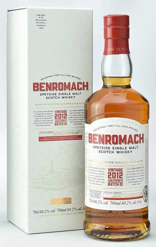 より濃厚で厚みあるベンロマックが堪能できる樽出しバージョン1stフィルシェリー&バーボン樽熟成の贅沢な味わいをぜひ! いまやスペイサイド地区において最も熱い注目を浴びる蒸留所のひとつとなった「ベンロマック」。最近は定番の10年以外、すべて完売入荷待ちとなる大人気蒸留所へと躍進を遂げています。世界中で需要が高まり限定品はもちろん、定番品でさえも年間割当量を制限されるほど、熱い注目を浴びているシングルモルトです。今回は前ビンテージも大好評だったカスクバージョンの新ビンテージ、ファーストバッチがようやくの入荷となりました。ファーストフィルシェリー樽とファーストフィルバーボン樽熟成によるおなじみの味わいが、樽出しによりさらに濃厚かつパワフルなワンランク上のベンロマックへと進化した1本です。より力強い味わいが好みの方には絶対に見逃せないアイテム!今回も限定入荷につき、お早目にご注文ください。 <テイスティングノート>[香り]バニラ、フルーツケーキにほのかなダークチョコレート。クリスマススパイスが柑橘系とチャーしたオークの香りへと変化していく。[味わい]黒胡椒が次第にオレンジピール、フルーツコンフィへ変化し、レッドベリーとほんの少しのジンジャースパイスが感じられる。[フィニッシュ]サルタナレーズンと柔らかいスモークを感じる長くてたっぷりとしたフィニッシュへ。 ベンロマック カスクストレングス 2012 バッチ1容量:700ml 度数:60.2度 10700円(税込)