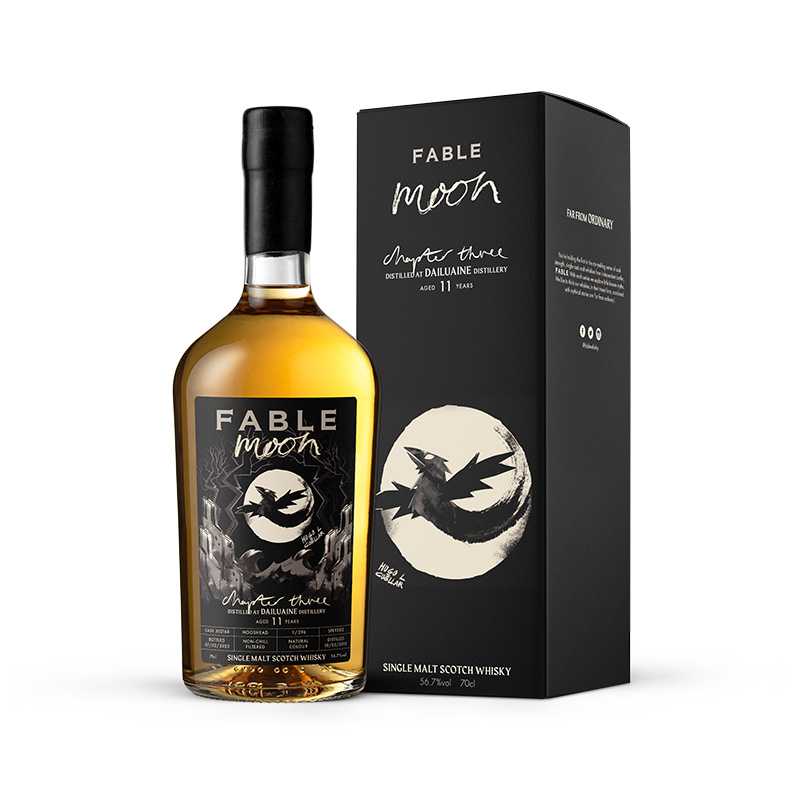 フェイブル チャプター3 "ムーン" – ダルユーイン 2010 11年 (PEATED) 56.7% 700ML 13694円(税込) 大好評を博すフェイブル3作目は、スペイサイドのダルユーインです。 「緑の谷」を意味する、その名にぴったりの美しい場所に位置するダルユーイン。 「月」は、薄暗い森の奥深くにひっそりと佇む蒸留所のイメージを反映しています。 ハウススタイルとも言える大胆な味わいを生かしながら、独特の甘さと旨みのコンビネーションが調和しています。 深い味わいと複雑さを持ったシングルモルト。神秘的なラベルとともに、興味の尽きない1本です。 【テイスティングノート】 香り:大麦糖、シトラス、ピーチ、トロピカルフルーツ、パイナップル。力強い、焦げたバタートースト。後からスパイシーになり、シナモンが漂う。 味わい:パワフルなバニラの甘さに加えて、大麦、軽く焦がした木材のスパイシーさ。オールスパイス、蜂蜜、かすかに蜜蝋と土っぽさ。濃厚でクリーミーな中にリンゴが現れる。 加水で爽やかな草原、熟していないフルーツのフレッシュさが感じられる。 余韻:甘いリンゴ、蜂蜜とかすかにワックス、シリアル、バニラ。ほのかにココナッツ、コショウとグレープフルーツの酸味と苦味を伴って、ゆっくりと引いていく。 生産地域:スコットランド スペイサイド 蒸留所名:ダルユーイン蒸留所 樽の種類:ホグスヘッド 蒸留時期:2010年3月10日 瓶詰時期:2021年2月7日 熟成年数:11年 瓶詰本数:296本 輸入本数:102本