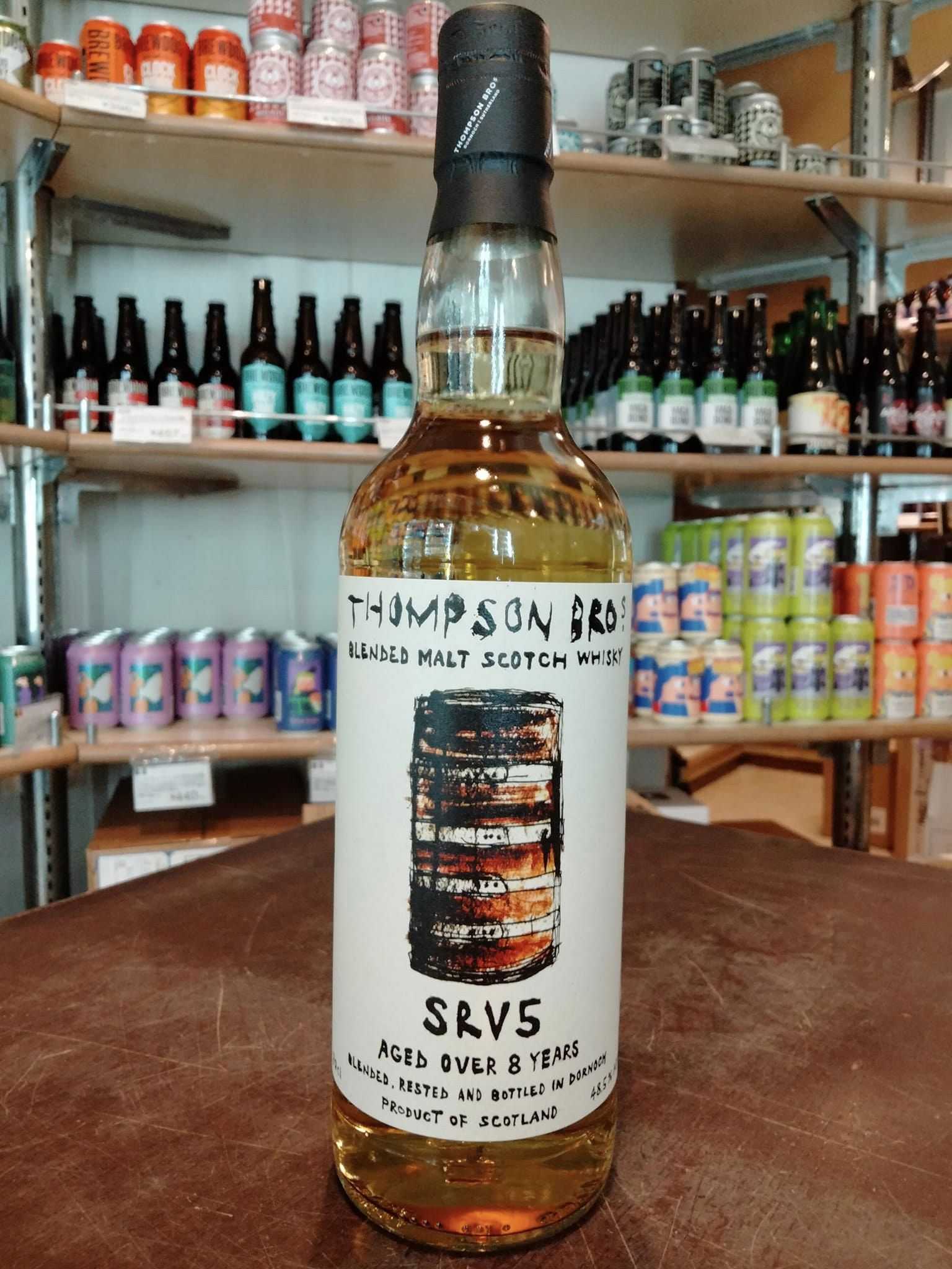 今回は!!!!!!!!!!!!!!! ドーノッホ蒸溜所のボトラーズブランド「トンプソンブラザーズ」より渾身の定番ラインアップとして!ドーノッホ蒸溜所内で熟成&ブレンドしリリースしていくブレンデッドモルト「SRV5」「THOMPSON BROTHERS SRV5 BLENDED MALT SCOTCH WHISKY」※定番商品 48,5度 700ML 6600円(税込)・タイプ:ブレンデッドモルトスコッチウィスキー(グレーンは入っておりません)・原材料:モルト・熟成:8年以上熟成・樽:ファーストフィルバレル、リフィルホグスヘッド・ラベル:KKHIROSHIMA(Instagram:kk_hiroshima)・受賞:IWSCSILVER、SAN FRANCISCO SPIRITS WORLD COMP SILVER 「SRV5」はウィスキー好きが楽しめるブレンデッドウィスキーとして、そして、トンプソンブラザーズのハウススタイルウィスキーとして、この度定番商品としてリリース致しました。 ドーノッホ蒸溜所の熟成庫内において、シェリーにおけるソレラシステムに近い形をとり、今後も常にSRV5の味わいを安定させリリースさせていきます。とても華やかでフレッシュな、そして口当たりもしっかりとして、ほのかにスモーキー。使い勝手も良く、価格も比較的にリーズナブル。あらゆるウィスキー好きのためのウィスキーです! ~テイスティングノート~・NOSE:ガリアメロン、レモングラス、アプリコット、キューカンバー、ワックスレモン、グリーンペッパーコーン、ブレインペッパーコーン、グリーンアップル、コーディアルライム、グレープフルーツビターズ、グリーンペッパー、ピート、焚火 ・PALATE:セイヨウスモモ、マスクメロン、バナナスムージー、レモンオイル、グレープフルーツジュース、ケーパー、レモングラス、タイム、オリーブオイル、キャンドルワックス、上品なスモーキーさ ・FINISH:レモンバーム、タイム、カンフル、ピート感、上品なスモーキーさ、コーティングワックスの長い余韻