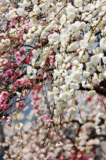 引っ越ししてから、源平桃がきれいにさくお宅がありまして、去年から楽しみにしておりました♪一本の木から紅花と白花が咲き競うので、源氏の旗が白、平氏(の旗が赤だったことから、名付けられたそうです。梅や桜なども紅白混合に咲く花なども「源平咲き」と呼びます。もともと赤や桃色の花木に突然変異で花が白くなるとのことです。赤い色素であるアントシアニンをつくるのに酵素が必要で、スイッチである酵素がうまく働かないと白い花になってしまうそうです。撮りながら不思議だなと思いまして。もう記憶にないのですが、もしかしから学校で習っている内容かもしれませんね。いま思うと10代の時の方が、いっぱい勉強したかも。いろんなことを忘れながら生きております(汗)