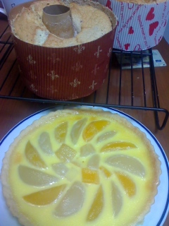 白桃と黄桃のタルトと、いちごと紅茶のシフォン♪