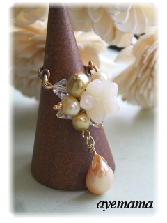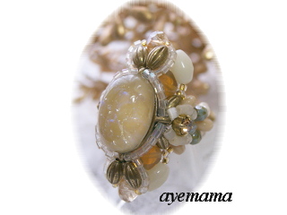 2006年もあとわずかですね。今年も皆様から沢山の温かいコメントをいただき、楽しくブログ管理が出来ましたありがとうございました。m(_ _)m今年最後のアップが、ちょっと地味なんですが…これですトップページを眺めると…オリジナルがで、昨夜あわてて作りました。お花がもう少し色のある物の方がよかったかなぁ(^^;色が地味なのでもう一つ!見飽きました!?これはアップしてませんでしたよねMBS9掲載のリングです。では、来年もビーズ作品を作っていきたいと思います。よろしくお願いいたします。m(_ _)mみなさま、良いお年を~ (^^)/~