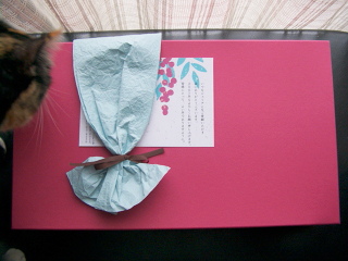 昨日届いていましたぁ~!今年?いや来年?初の福袋ぉ昨年と同じく「J」さんの福袋を購入昨年は、内容がほとんど同じだった気が…楽天で日記をアップしてらっしゃる方のところへ行って3種類くらいしか見れなかったような今年はどうでしょうか何か作業をしていると、必ずジャマしにくるネコの頭まで写ってます(TT)全体がこんな感じ♪で入っていました。キットは4種類、去年よりちょっと少ないかなとりあえず、これだけで購入金額を越していると思います。(2つは金額がわかるけど、残り2個は福袋限定キットだそうな)判りにくいのですが、白っぽいケース入りの所に爪なしですが、カボションと一つ入ってます。昨年は、透明ビーズごっそり!でしたが、今年はブラックビーズごっそり!です。M様のためのような品揃え!これでグラスホルダーを作ろうかなぁ~(謎)二つのピロー型ボックスにはこれ!特小ビーズが6色、チェコの大粒ビーズ、スパンコール、シャワー付きハットピン(って言いましたっけ?)個人的な感想!色合い的には、昨年の方が好みでした。キットは今年の方が使えるかなチェコや特小…使わない色だ(TT) おっと!本日予定していた、ガス台の交換作業が始まりました。レス他は、また後ほどさせていただきます。