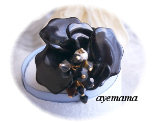 なんちゃってリング並み(以上?)に大きいです(^^;まぁ、お正月なのでこれくらい大きくてもいいかなぁ~この後ブローチに直すかも…花びらは一枚ずつのプラパーツで、中心からジャラジャラが出ています真っ黒は撮影が難しい!平らに見えますねぇ~実物はもっと高さがあって、邪魔です(^^;これから吉祥寺へ着けていこうかとどなたかとお会いできるかな(^^)
