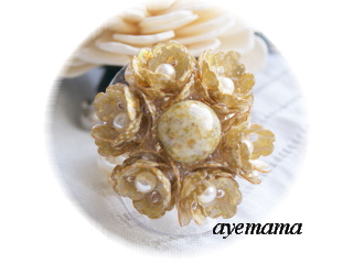 また、またスパンコールを使ったリングです。ちょっと珍しいスパンコールなんですよ!以前、こちらでもちょっと紹介した恵比寿のスパンコール屋さん「montserrat」さんで購入したお花の形のスパンコールを使いました。フェイスのモチーフ随分前に作って、ほっぽってました(^^;ま!リングにしちゃうか!とアームをつけてのアップです。単色っぽくて地味?~*~*~*~*~*~*~*~*~*~*~*~*~*~*~*~やっと休みぃ~って感じです。(フルで働いている方ごめんなさい)今週は、PTAのお仕事があったため、仕事もちょっと変則になったり最初の予算の締め切りが迫り、伝票揃えるのに四苦八苦そういえば、毎年この時期にぼやいてますよね…私(^^;そんな時期に上司は出張が増える!出張前に全部言っておこう!って感じになるので私「そろそろ、キャパシティーオーバーになります」って言います。(おばちゃんは強気)さすがに、ピッタリ「0円」で終わるのは不自然ですよね(まぁ、そう終わらせるのもまだあるのですが…)で、最近はちょっぴり赤を出して「これで終了です!」と宣言するのですが今年は4種類持ってまして、事務方に怒られながら頑張ってます。お金を稼ぐって大変ですよね(いまさらながら)