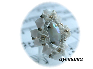 ビーズ交換に参加いただきありがとうございました。本日で終了いたします。これから送りますので、少々お待ちくださいね。さて、ビーズ交換ネタですっかり新作アップをしていませんでした(^^;本日久しぶりのアップです。白のスパンコールが気に入り何とかモチーフに出来ないかと考えました。基本的に自分で着けたいものを作るのですが、これはどうかなぁ微妙なところです。(^^;中心のマーキス、スパンコールはオーロラ加工ですが…画像では、いまひとつわかりませんねぇむずい!