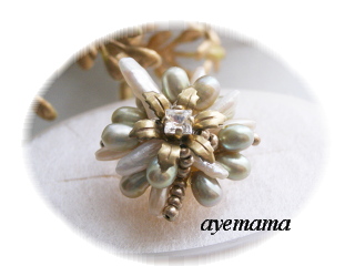 たぶん、縫いつけ用スワロだと…(^^;中心のものですが、随分前に買ったものでよく覚えていないネットで調べてみましたが、同じものが見つからない上下に二箇所穴がありそこにテグスを通してリングに編み上げました最近のマイブーム単色系です。中心がミラーのようにギラギラです(^^;~*~*~*~*~*~*~*~*~*~*~*~*~*~*~*~*~みなさま、昨日の日記におめでとうコメントありがとうございました仕事を続けられること、皆様のコメント 本当にうれしいですこのブログで沢山の方々を知り合え、交流できてうれしいありがとうございました。これからも頑張ってビーズ作品のアップを続けていきますそして、ちょっとグチも聞いてくださいね(^-^)