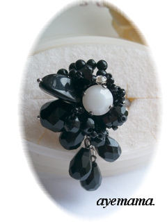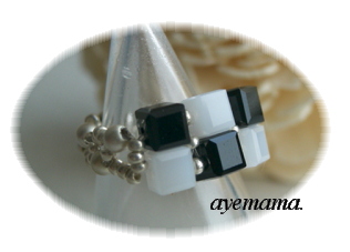 二段なので市松模様にはなりませんねぇ(^^;白黒のツートンです。先日電車に乗っていたときに、このカラーのリングをされていた方がいてもう、即!作りたいぃ昨日、仕事帰りにKIWAに寄ってスワロのキューブを買って、夜作りました。あまりビーズの数は使っていませんが、テグスを何度も通してグラつかないようにしています。