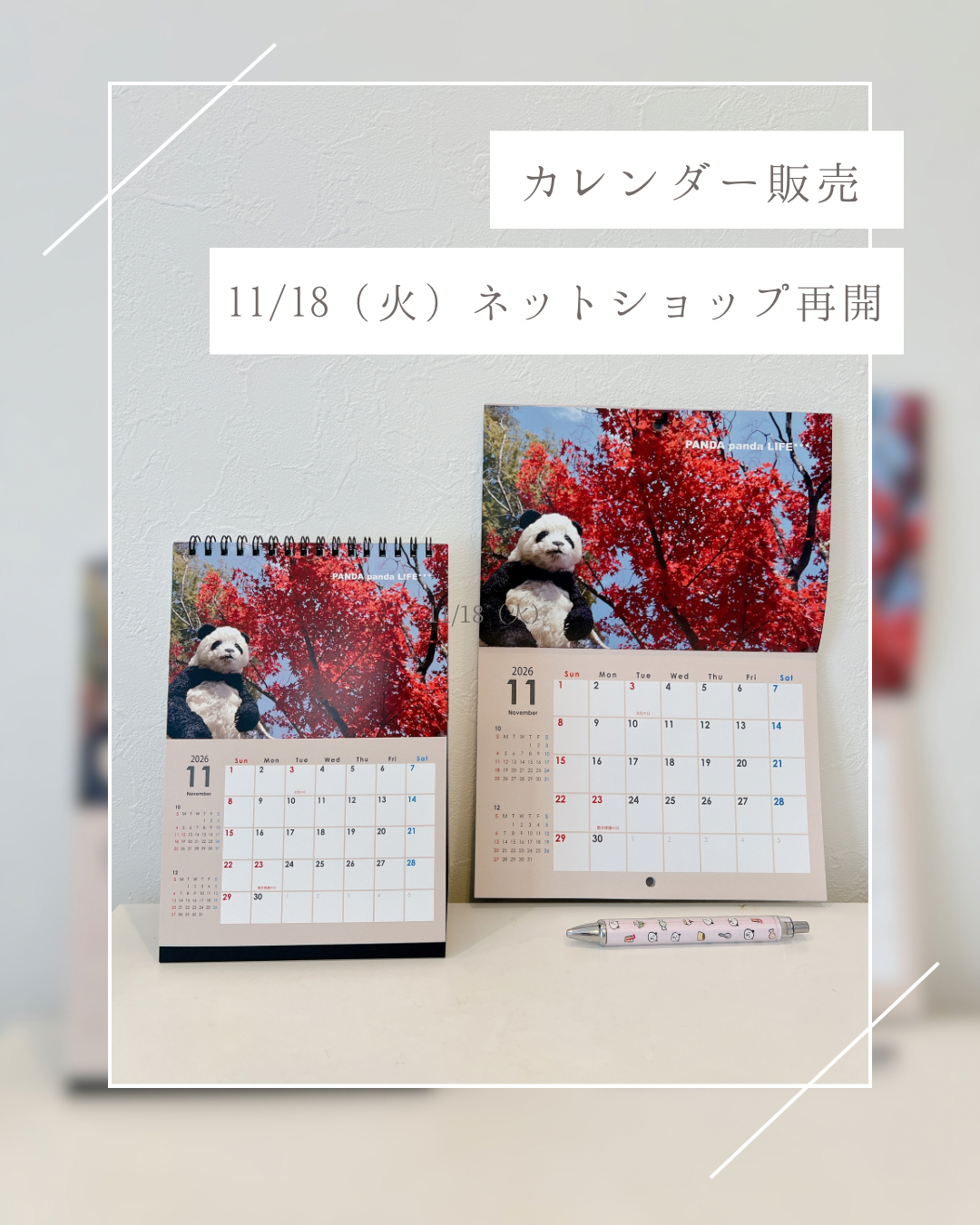 【ネットショップからのお知らせ】11/18(火)にネットショップを再開させます!2026年のカレンダーのネットでの販売開始をします!卓上、壁掛けともにあります!ずっと準備中になっていて本当にすみません。個展会場に全てのお品物を持っていっているので、それが片付いてからネットショップを開けますそれまであと少し待っていてくださいね🐼