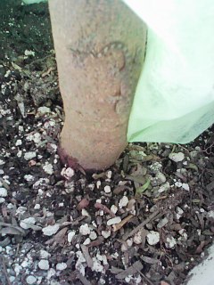 お客さんびっくりしたら困るしめっちゃ小さいから踏まれそうで、何度か放り出しんだけど、戻ってきて植木の中に隠れてます。