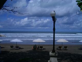 ☆☆☆☆☆☆☆☆バリをブラブラ略してバリブラ ホテルの朝ブッフェを食べ終わり、 今日の予定は繁華街クタ~レギャンをバリブラ。 ホテルを出るとすぐに地元バリニーズの勧誘(?)が始まります。 「こんにちは~」 「元気~?」 「新婚さん~?」 地面に座りながらチラシを差し出し 「マッサージ?」 「エステ?」 「タクシー?」 日本語がとても上手なので話したくなる気持ちも分かりますが、 必要なければ無視です。話し掛けられて話をしちゃうとしつこい勧誘(?)になります。自己責任です。ひたすら無視しましょう東京のキャッチで培われた私の「無視技術」(笑)が発揮できました。バリブラ初日で失敗した事は、最初にタクシーを利用しなかった事。ホテルからDFSギャラリアまで歩くのはとても疲れます。目の前にDFSが見えてても、信号がない上に交通量がひどく多いので道路を横断できません。私たちが横断できたのは、奇跡に近いです。DFSではグッチ等のハイブランド、化粧売り場が入ってますが、空港でも免税店があったので無理してこちらに行かなくても大丈夫です。まぁ同じ物が両方にあるとは限りませんが。。。価格設定はUSドルで、日本円でも購入できます。ちなみに私は空港にあるのを知らなかったのでこちらで購入しましたが。。。あれだけ苦労して行ったDFSでしたが、帰りはタクシーで約15分。24500ルピア(日本円で約196円)でした。日本語上手なタクシーの運転手さん。早速相方が交渉開始。明後日の予定は車で約1時間のウブドに行く予定なので・・・1日40万ルピアで交渉成立でしたガイドブックにも乗ってるパパスカフェ。お店の雰囲気かなりです スタッフもメニューも日本語ではなく英語です。知ってる単語ばかりが記載されてるメニューを注文。 その名もペスカトーレ。さすが観光客向けのお店。開放的なお店からは海が一望できるし、値段も少々お高め設定でした。(と言っても、二人でビンタンビールまで飲んで日本円2240円で安いんですけど)初めてのビンタンビールは飲み口軽くかなりグビっといけちゃう日本で飲むと高いのにぃ。スーパーでは12000ルピア(日本円96円)です。初めてづくしのバリブラ1日目。歩きつかれておやすみなさい☆☆☆☆☆☆☆☆designed by yumeyumeko