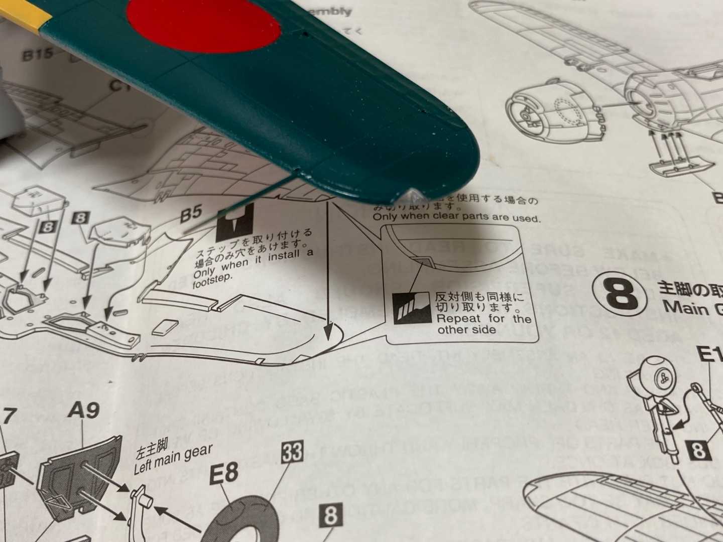 零戦52型、サクッと形になりました。エアブラシ塗装に備え、コクピットをマスキング。翼端灯はクリアパーツなので、先にマッキーで塗っておきます。キャノピーのマスキングには、マスキング販売のマスクシートを使います。ゲートの位置がキャノピーの開口部にあるので、ランナーに付けたままでマスキングし、このまま塗装する予定です。エアブラシ塗装で裏側に吹き込まないように、裏側にマスキングゾルを塗って保護します。