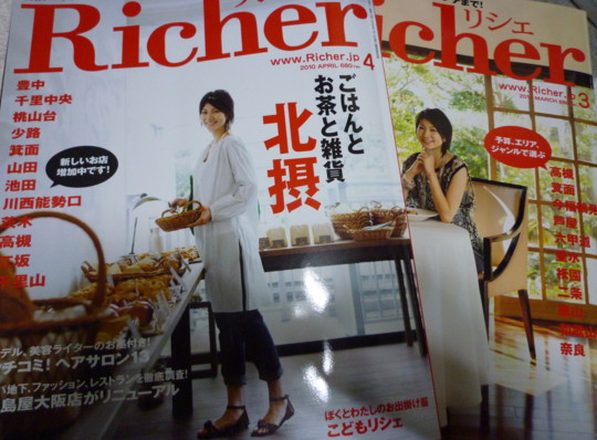 Richer という エルマガジン社から出版されている雑誌を時々買います・・・今月は北摂特集だったし うちの近所に マダムシンコのアトリエもあるようですが未だ行ったことがない 豊中にある沢山のフレンチにも行ったことないし 案外 北摂のことは知らないわたしです・・・ただ 最近ここ数年で北摂がどんどん魅力的な街になってて 行きたいお店が増えているのも事実だし 休日は梅田やなんばに行くより断然地元が好きです・・・ま正直言ってしがない派遣社員だし 優雅にしている場合ではないと思うわたしなのですがやはり地元でランチするのはたまにはいいなと思います・・・そして箕面や万博公園などハイキングにふさわしい場所が沢山あるのも北摂の魅力だと思いますところで 寺田椿さんという表紙のモデルの方は豊中市出身だそうで・・・2児のセレブママらしいけれど 小田急とか 阪急百貨店とか いろんな雑誌のモデルとしてよくお見かけします ショートカットが素敵なさわやかな笑顔のひとで このひと素敵 寺田椿さんのサイトより引用させていただきました