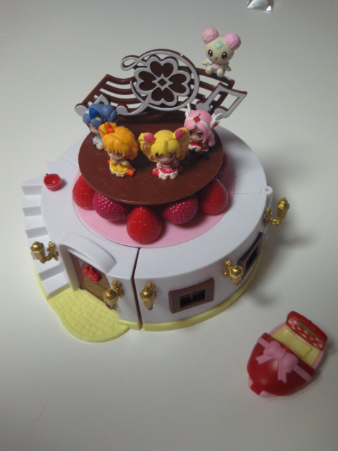 プリキュアのイチゴのショートケーキハウス。スーパーで毎日ひそかに1個づつ買って集めていたCちゃんとbabywhiteでしたが、5日目の今日、やっと全部あつまりました~~~去年も同じようなお店屋さんのがあったのだけど、今年のはもう、すごいの。昔?の超合金ロボみたいに変身するのです!!開くとなんとこんな感じに。ちゃんとニューキャラのキュアパッションも!いちごのベッドルームをもってるの。ベッドはカプセルみたいな仕様。ドアも開閉するし、みんなとお話できるバルコニーも。ティーパーティーもできるのよ。ドキドキしながらいろーんなスーパーにいってたのだけど、自由ヶ丘と溝の口の東急ストアにはいっぱい入荷していました:)ネットでも売ってま~す:)安い順バンダイ フレッシュプリキュア! プリキュアショートケーキハウス 全5種セットポイント10倍!残り2個バンダイ/食玩・BOXフィギュア【エンタメ0907】【全部揃ってます!!】プリキュアショートケーキハウス 【全5種セット】本気で遊べるおもちゃです!
