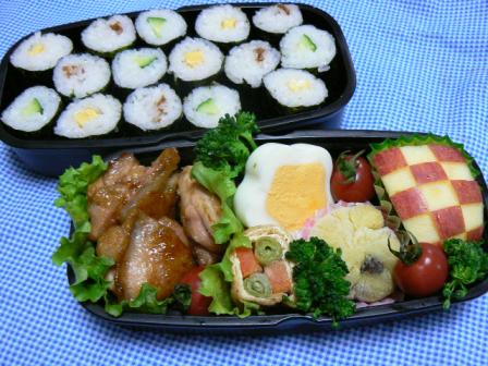 4月18日のお弁当今朝は、私もいっしょに6時半出発のため、短時間で仕上げられるよう自家製冷凍食品?を2種類使用細巻き(梅・卵・きゅうり)鶏肉のウスターソース焼き【送料無料】お弁当おかずアイデア帖よりお花のゆで卵信田巻き 先日のお弁当で多めに作り、冷凍しておいたものさつまいもとりんごのきんとん 先日のお弁当で多めに作り、冷凍しておいたものブロッコリー・レタス・ミニトマト市松りんご我が家のはお花型ですが、いろいろな型があるようですね