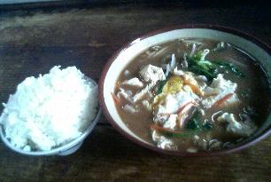 9月24日(日)グッモーニン!ってあんまりいい目覚めじゃなかったけどね。ラジオの音が5時くらいからうるさくて・・とりあえず、また朝食は『丸安そば』へ。あさはみそ汁だね。450円也ちょっとのんびり散歩してから那覇空港に向かう。石垣行きは9:45発。石垣空港に到着。ここで京都の友人と合流する。後のボラ娘&母さんわずか10分ほどの時間差である。久しぶり~無事合流。さて、鳩間島へ行く船にはまだまだ時間がある。明石にある明石食堂に行こうと、電話してみるが、連絡が取れない。停電や水道供給の停止など八重山を襲った台風13号の影響なのだろうか・・・タクシーで離島桟橋に行く。タクシーの情報網で明石食堂は26日から営業を再開することが判明した。鳩間行きのチケットを買って、荷物を置き、あやぱにモールでも行きましょかね。お土産の物色。そのあと昼食へ。なかよし食堂の向かい・・・名前忘れた。三人で豆腐ちゃんぷる、ふーちゃんぷる、そば定食を食す。どれもおいしい。時間があるので、おもいっきりのんびり。さてと・・・最終日27日に泊まるところがまだ決まっていない。きちやん持参の八重山ガイドブックを広げ、月桃荘にしましょかね~。娘にまかせっきり・・・この旅で娘はよく働いてくれました。(褒)下見と予約をしに月桃荘へ。金城の隣とかあさんと娘は言うが、お父さんはボケてました。焼肉金城でしたか。。。そうそう、この後フリ-マーケットにも行ったっけ・・・そろそろ時間となりました。鳩間へ出発!西表の上原を経由して鳩間に到着。去年までなかなか渡れず、やっと去年苦労して渡ったのが嘘のようにいとも簡単についてしまった。今年から定期便が就航したからね。 つづく・・・