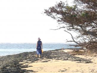 9月25日(月)夕刻いつまで同じ日で引っ張るんだか・・・バラスツアーから帰ってからちょっとのんびりモード。腹へった。売店でカップ麺を買って食べる。(売店では乾物、缶詰、カップメンくらいしか売っていない)泳ぐと本当に腹へるのよね。朝は島仲浜で泳いで、昼食後バラスツアーだから泳ぎっぱなし。しかーし!そんなことではへこたれないつりんちゅ。「屋良浜で泳ぐなら今しかないぞ~」と娘をそそのかす。明日は昼前には鳩間を発つのだ。娘は「疲れたよ~」「えーい!そんなひ弱な娘に育てた覚えはなーい!」というやりとりはあるはずもなく、「いきま~す!」かあさんは「十分およいだからええわ。」「屋良浜には木陰があって、涼しいから本でも読んでるといいよ~」で三人で出かける。屋良浜につくと…木陰など全くない┐('~`;)┌台風で潮をかぶり、葉がすべて落ちてしまったのだ。見渡す限り日陰がない。小さな岩陰があるが、先着の女性が見事にスッポリと収まっている。微動だにしない。マジで笑える。お母さんは屋良を一人歩き出す。お父さんと娘は沖に向かって泳ぐ。(いつの間にか家族になってる)砂地が続き、たまに根、サンゴがあり、魚もぽつぽついる。行けども行けども同じ景色で2m前後の深さ。キリがないので戻ってくると、三線の音が聞こえる。同じ宿のS氏が弾いている。(同級生)お母さんのリクエストであろう「島人ぬ宝」が聞こえてきた。娘と海のなかで歌い、踊る。やはり木陰を求めて三線を弾きに来たのだが、木陰が消えていたのだ。西日をまともに受けて汗だくになってる。あだーん!うーん、今日は本当によく泳いだな~。シャワーを浴びたら、もうすぐ夕食だ。